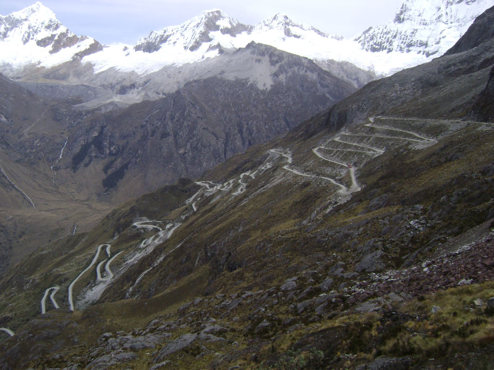 Depois de vistar Chan Chan e os cavallitos de totora, resolvemos dormir alem de trujillo, um povoado pequeno mas perto da entrada para subir a cordilheira negra pelo chao passando pelo canion del pato. Como de praxe saimos cedinho e pela panamerica fomos em frente tentando encontrar a entrada, nao tem placas nem nada, e ruim de achar. Erra um pouco, passa pergunta e enfim encontra. Ai ja comeca o chaozinho bommm, logo a uns 10 km parei para filmar o joao vindo e a mimoza tamanha a beleza foi ao solo para contemplar essa magnifica paisagem do deserto e da cordilheira negra. Espera o joao chegar pergunta para ela, quer se levantar ou nao. Pois bem ela quis e continuamos a viagem, Sobe um pouco desce e comeca a entra pelo Canion del Pato. Sao uns 150 kms, de chao as vezes mais o menos, as vezes brabos e com pedras a fu, e 32 tuneis encravados e esculpidos nas rochas, a coisa e loka. Depois de cruzar o canion, comeca a subida pelo chao mais ingreme para enfim cruzar a cordilheira negra e entrar no vale entre as duas cordilheias, mas isso a 2800 mts. Chegamos cedo e ficamos por Cazar, daonde pode-se subir para os passeios. Na mesma tarde subimos a cordilheira para ver a lagoa Paron, 31 km de chao bruto para subir e os mesmos para descer, e tem que ir com as motocas peladas de babagem. Na manha seguinte fomos a outro passeio para ver as logoas de Llanganuco e para ir ate aos 4500 mts para cruzar para o outro lado da cordilheira no passo Portachuelo. A vista la de cima com as lagoas mais abaixo e sem explicacao, Tamanha a reverencia que a querida do joao se estendeu sozinha  para comtemplar tamanha natureza, porem se machucou um pouco, mas sem problemas. A subida e braba tambem pior que a outra e sober 47 kms e depois desce tudo isso. Feito os tours, almocamos no nosso hotel uma truta e partimos para adiantar um pouco o caminho para ficar mais perto de Nazca. No caminho entre as cordilheias pelos campos parecidos com pampas, a estrada corta as duas cordilheiras,,,e pode se ver a branca do lado esquerdo toda nevada e a negra do direito pelada de vegetacao. A estrada logo apois Huaraz esta em obras em varios km, e a empreitada que esta reformando toda atravessada, numa dessas liberadas de via pelos funcionarios, saimos com as motocas e estamos fazendo uma curva nas britas e vem na contra mao um caminhao da mesma empretira acelerando tudo e tivemos que sair para as valetas. O joao se deu bem so atolou nas britas, a minha motoca enterrou a dianteira e pealo com o piloto. Danos materias poucos, espelho quebrado, e perna esquerda apertada contra a motoca e presa, sem maiores problemas. Levanta a negrinha,,e vamos embora. Fez isso porque viu que estavamos indo embora dessas magnificas paisagens, hehehehe. Acamos por dormir em Patiavilca, que esta logo que entra novamente na Panamericana. Queriamos dormir ja em Nazca, porem nosso dia comecou complicado. Logo nos primeiros 10 km, fomos parados pela policia, isso ja deve ter sido a vigesima vez aqui no Peru, so que desta vez tivemos que marchar com R$ 30.00 de bola, papinho que nem dos argentinos, passaram na faixa dupla, os documentos vao para embaixada, enfim todo aquele papo furado desses FDP da policia. Depenado esse problema a estrada compensa, esta toda duplicada a uns 200 antes de lima e uns 150 apos, passamos por Lima pela manha ainda com exito, sem errar caminho, tamanha o caus que e o transito dessa cidade. Porem logo ao meio dia a corrente da mimosa do joao comecou a incomodar, nao esta lubrificando mais e esta ficando duro os elos, vamos ter problemas. Paramos num lugarejo chamado Sao Vicente, em uma oficina para tentar lavar, porem so com gasolina, Mais um espelho na minha XT e seguimos caminho, a corrente melhorou, mas o seu destino e o fim, hehehehe, quando nao sei. Por fim chegamos meia tarde em ICA e por aqui decidimos ficar.